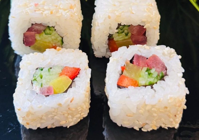 Рис, нори, огурец, помидор, перец болгарский, кунжут белый